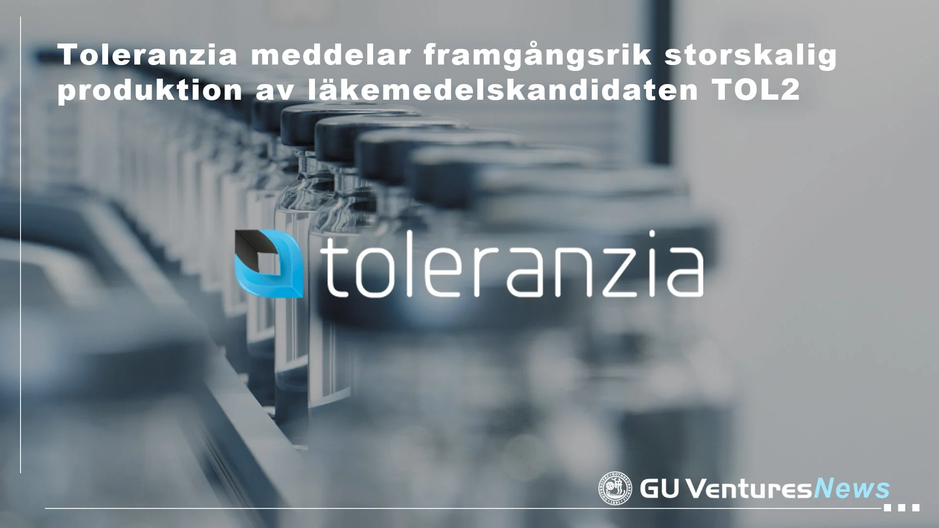 Toleranzia AB (”Toleranzia” eller ”Bolaget”) meddelar idag att Bolaget framgångsrikt har tillverkat och utvärderat en så kallad pilot-batch av sin läkemedelskandidat TOL2 hos kontraktstillverkaren 3P Biopharmaceuticals (3P). Vid framtagandet av pilot-batchen har alla steg i tillverkningsprocessen utförts i stor skala med tillfredsställande resultat. Bolaget kommer nu att gå vidare med utvecklingen av TOL2 och genomföra en toxikologisk studie som det sista steget innan kliniska prövningar inleds på patienter med myastenia gravis.
