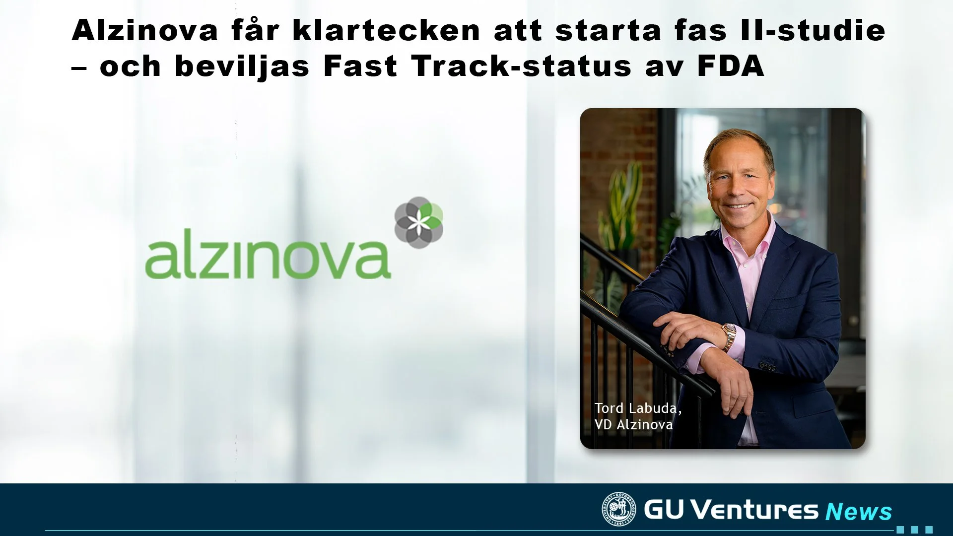 - Att Alzinova nu beviljats både IND och Fast Track-status av FDA är en mycket stark milstolpe. Det visar att bolaget har en solid vetenskaplig grund och en lovande strategi för att adressera en av vår tids största medicinska utmaningar. Vi är stolta över att få vara med och stödja Alzinovas viktiga arbete mot ett framtida vaccin mot Alzheimers sjukdom”, säger Klementina Österberg, vd för GU Ventures