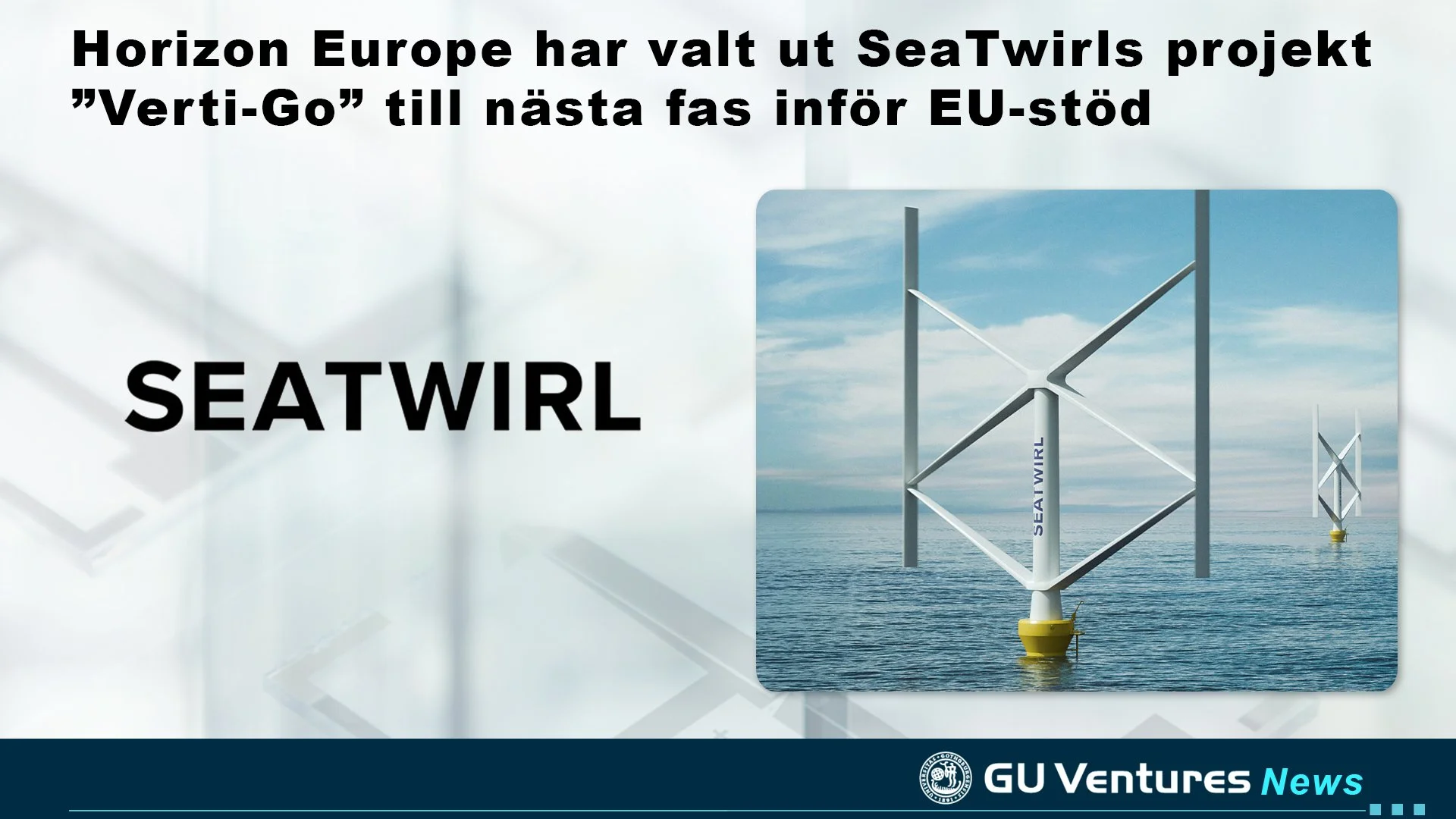 Projektet "Verti-Go", som valts ut till nästa fas i EU:s forskningsprogram Horizon Europe, syftar till att demonstrera SeaTwirls banbrytande teknik för flytande vindkraftverk och har valts ut i hård internationell konkurrens. Bakom ansökan ligger ett konsortie som består av 11 aktörer från näringsliv och akademi.