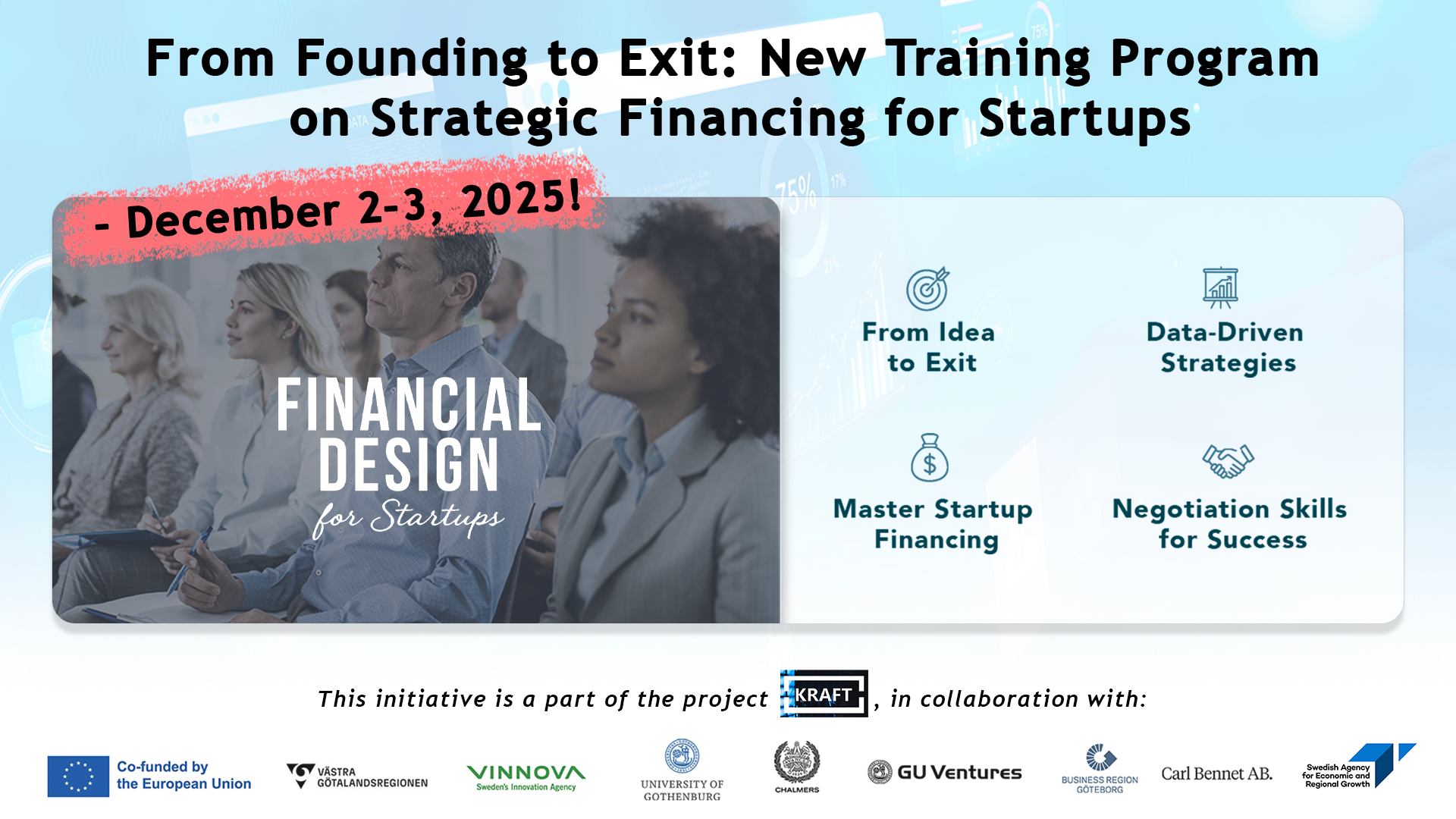 This December, GU Ventures launches a new two-day intensive training program: Financial Design for Startups ("FDS"). The program is led by serial entrepreneur and researcher Per Hulthén, powered by GU Ventures and its co-financers and designed to strengthen expertise in long-term startup financing and capitalization – knowledge that is increasingly crucial in the competitive Swedish entrepreneurial ecosystem.