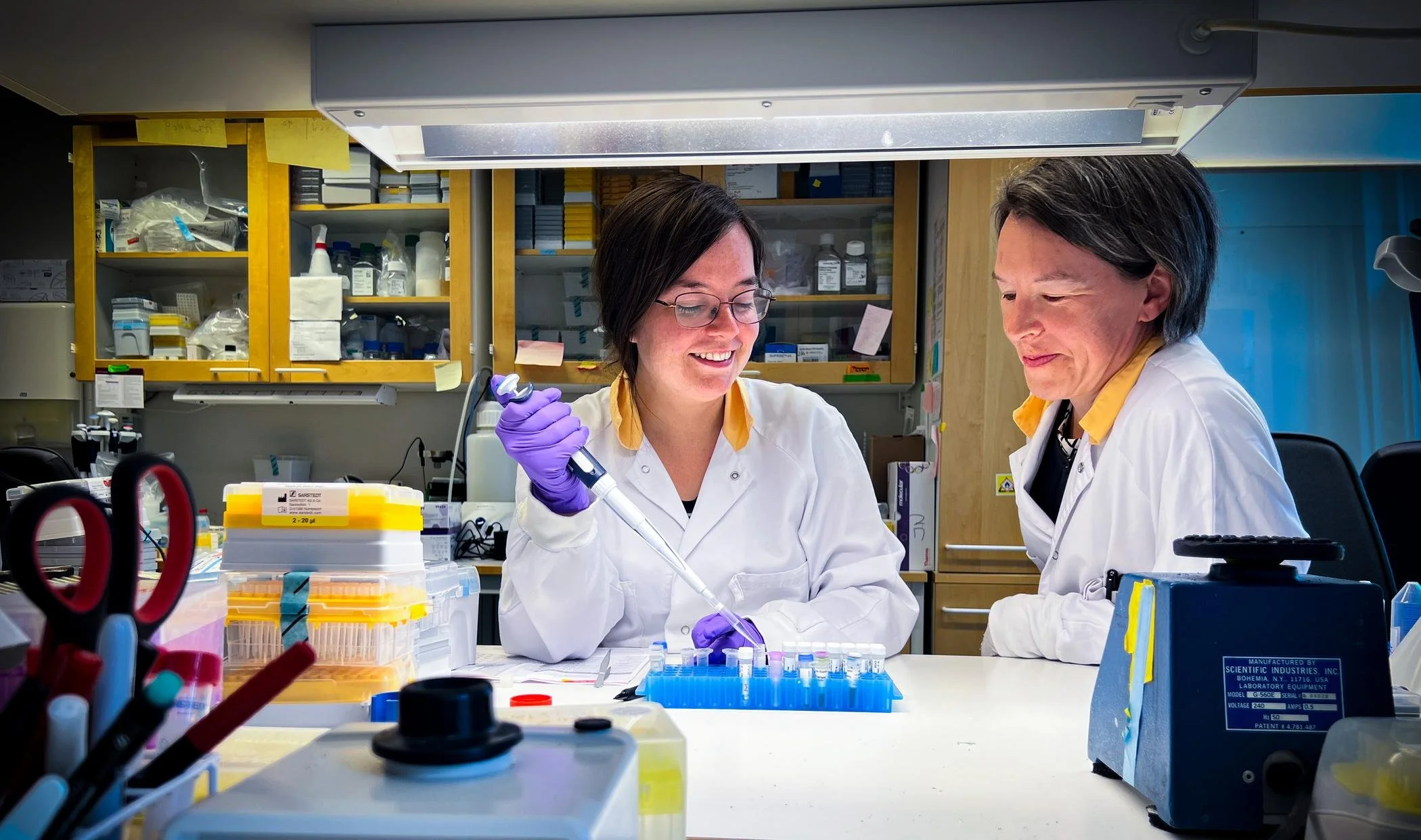 På bild: Postdoc Maria Öberg och kollega arbetar i labbet. Foto: Elin Lindström