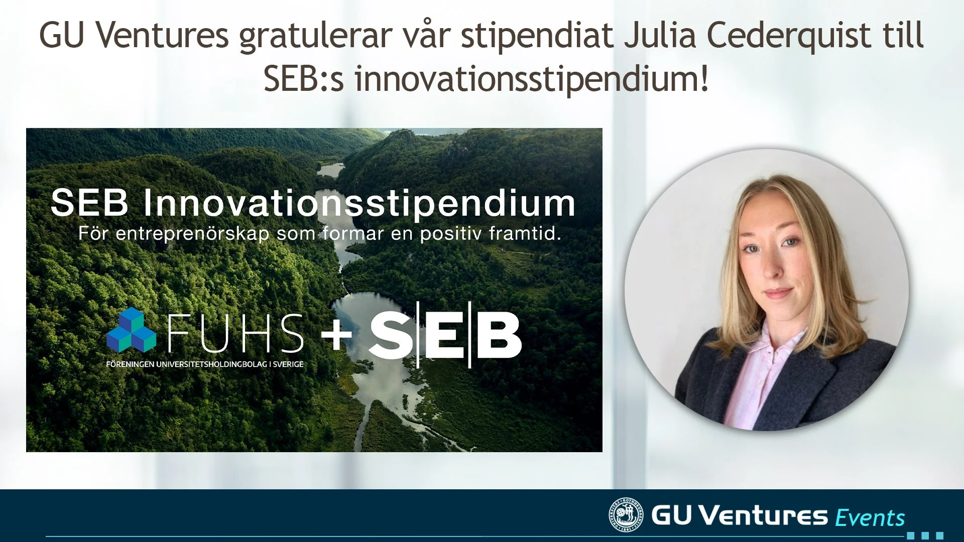 GU Ventures gratulerar vår stipendiat Julia Cederquist till SEB:s innovationsstipendium!
